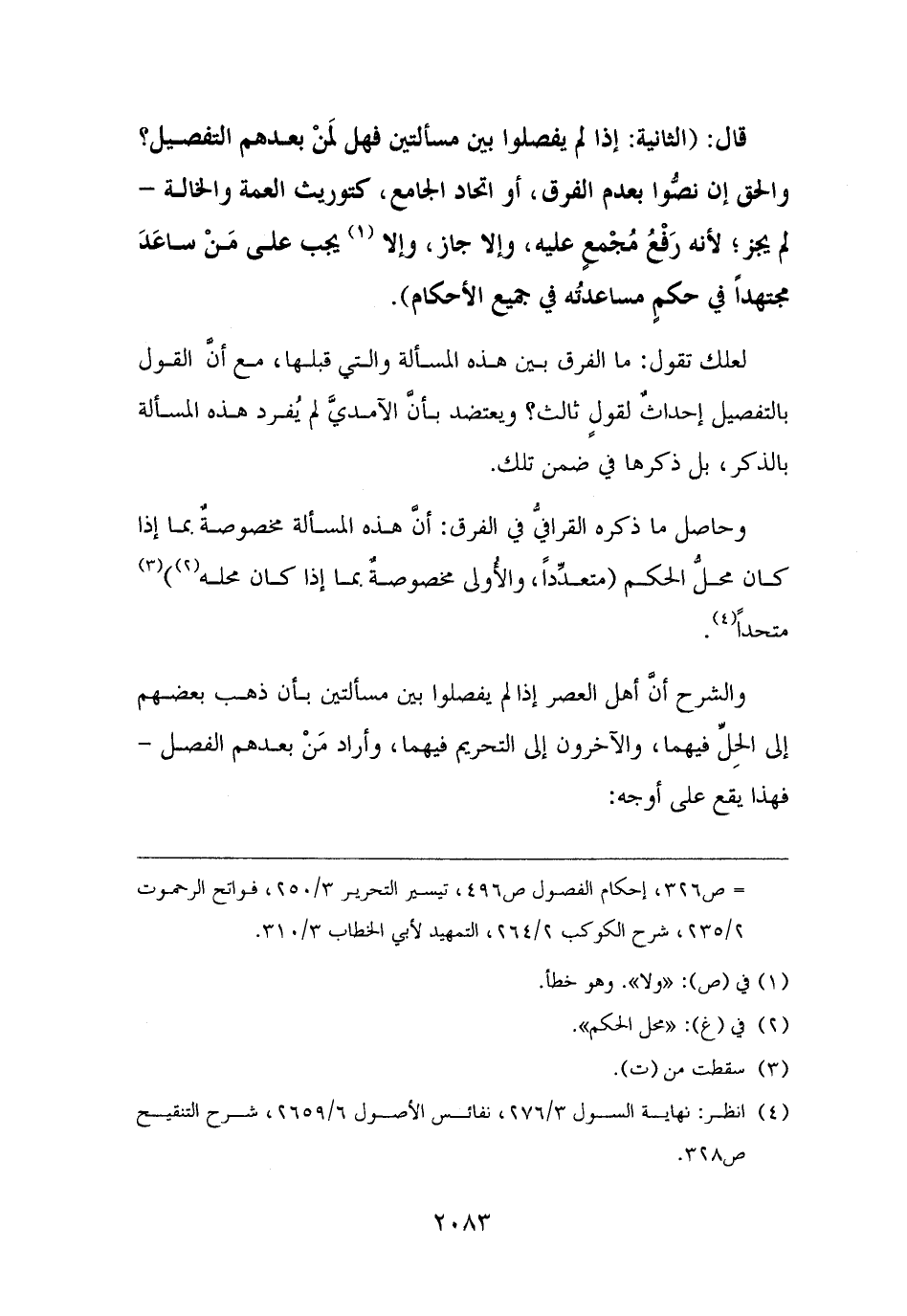 والشرح أنَّ أهل العصر إذا لم يفصلوا بين مسألتين بأن ذهب بعضهم إلى الحِلِّ فيهما، والآخرون إلى التحريم فيهما، وأراد مَنْ بعدهم الفصل - فهذا يقع على أوجه: