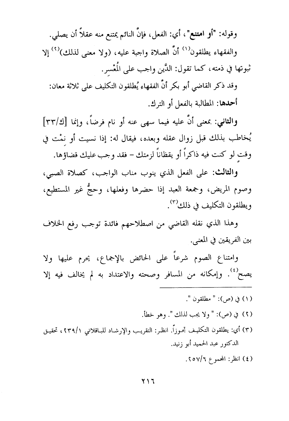 (¬٣) أي: يطلقون التكليف تجوزًا. انظر: التقريب والإرشاد للباقلاني ١/ ٢٣٩، تحقيق الدكتور عبد الحميد أبو زنيد.