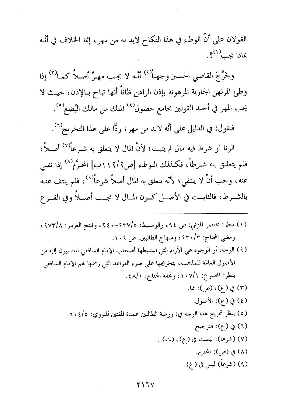 الزنا لو شرط فيه مال لم يثبت؛ لأنَّ المال لا يتعلق به شرعًا (¬٧) أصلًا، فلم يتعلق به شرطًا، فكذلك الوطء المحرَّم (¬٨) إذا نفي عنه، وجب أنْ لا ينتفي؛ لأنَّه يتعلق به المال أصلًا شرعًا (¬٩)، فلم ينتف عنه بالشرط، فالثابت في الأصل كون المال لا يجب أصلًا وفي الفرع