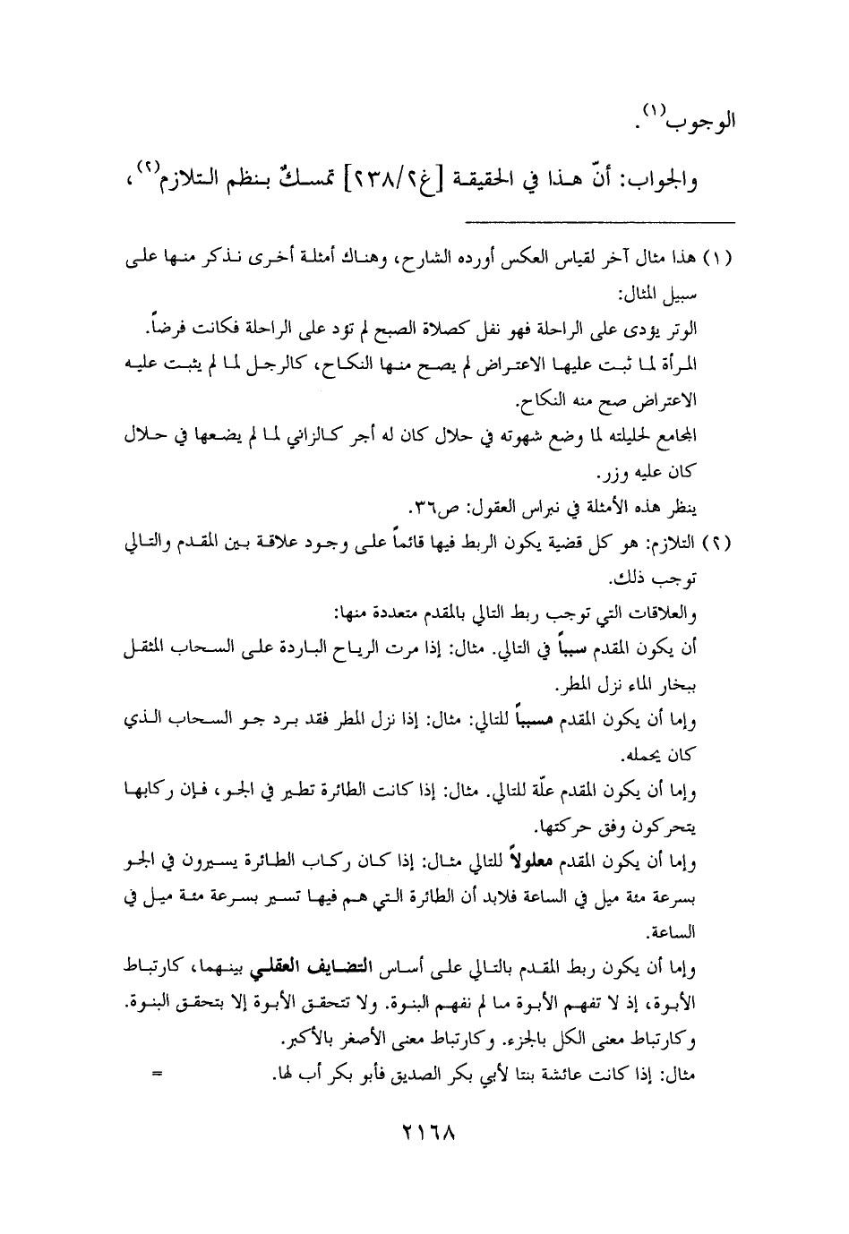 والجواب: أنّ هذا في الحقيقة تمسكٌ بنظم التلازم (¬٢)،
