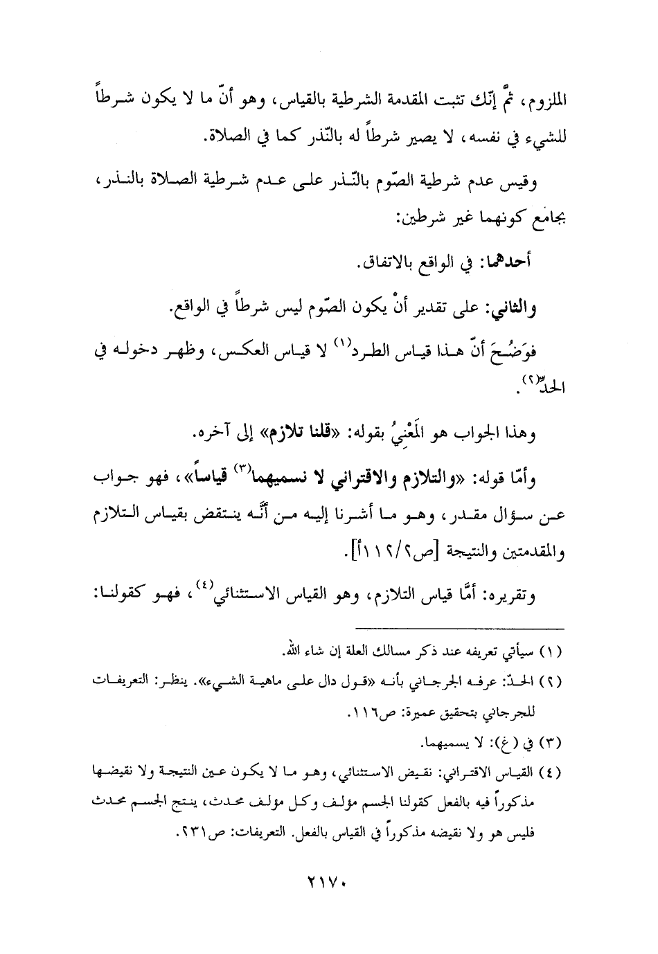 وأمّا قوله: "والتلازم والاقتراني لا نسميهما (¬٣) قياسًا"، فهو جواب عن سؤال مقدر، وهو ما أشرنا إليه من أَنَّه ينتقض بقياس التلازم والمقدمتين والنتيجة.
