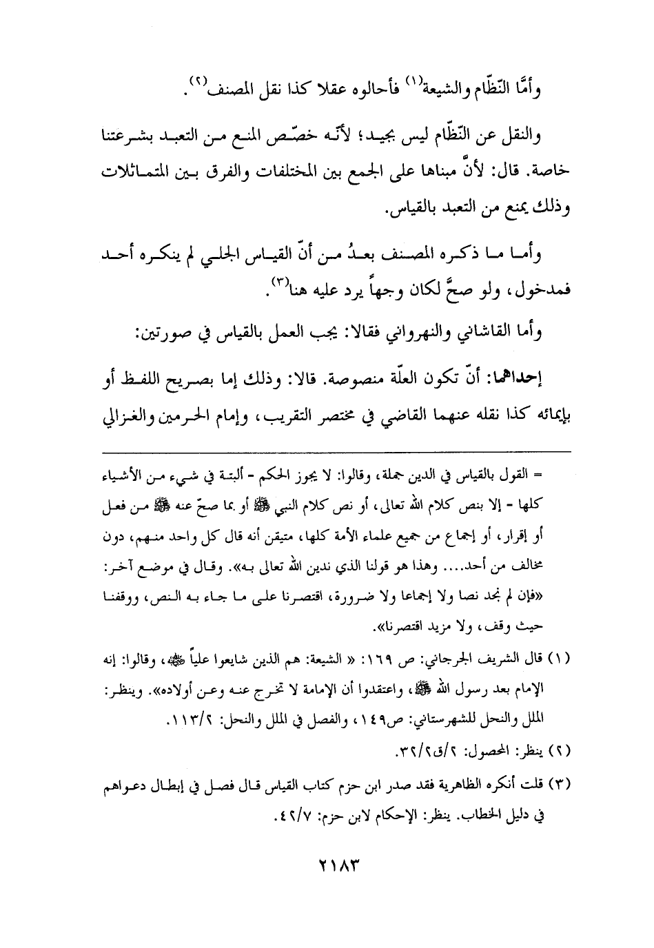(¬٣) قلت أنكره الظاهرية فقد صدر ابن حزم كتاب القياس قال فصل في إبطال دعواهم في دليل الخطاب. ينظر: الإحكام لابن حزم: ٧/ ٤٢.