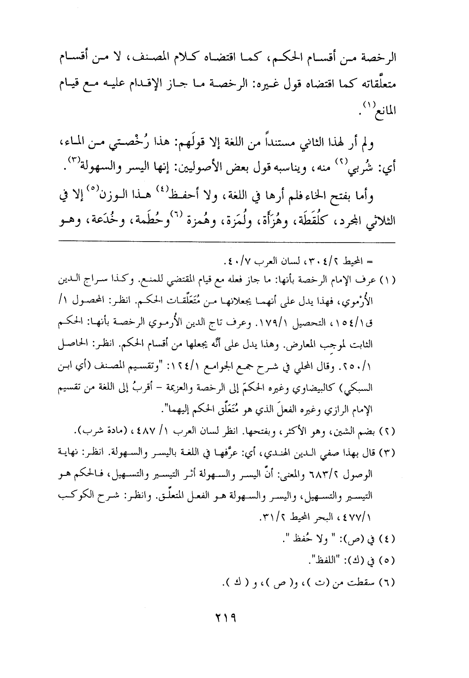 (¬١) عرف الإمام الرخصة بأنها: ما جاز فعله مع قيام المقتضي للمنع. وكذا سراج الدين الأُرْموي، فهذا يدل على أنهما يجعلانها من مُتَعَلَّقات الحكم. انظر: المحصول ١/ ق ١/ ١٥٤، التحصيل ١/ ١٧٩. وعرف تاج الدين الأُرموي الرخصة بأنها: الحكم الثابت لموجِب المعارض. وهذا يدل على أَنَّه يجعلها من أقسام الحكم. انظر: الحاصل ١/ ٢٥٠. وقال المحلي في شرح جمع الجوامع ١/ ١٢٤: "وتقسيم المصنف (أي ابن السبكي) كالبيضاوي وغيره الحكمَ إلى الرخصة والعزيمة - أقربُ إلى اللغة من تقسيم الإمام الرازي وغيره الفعلَ الذي هو مُتَعَلِّق الحكم إليهما".