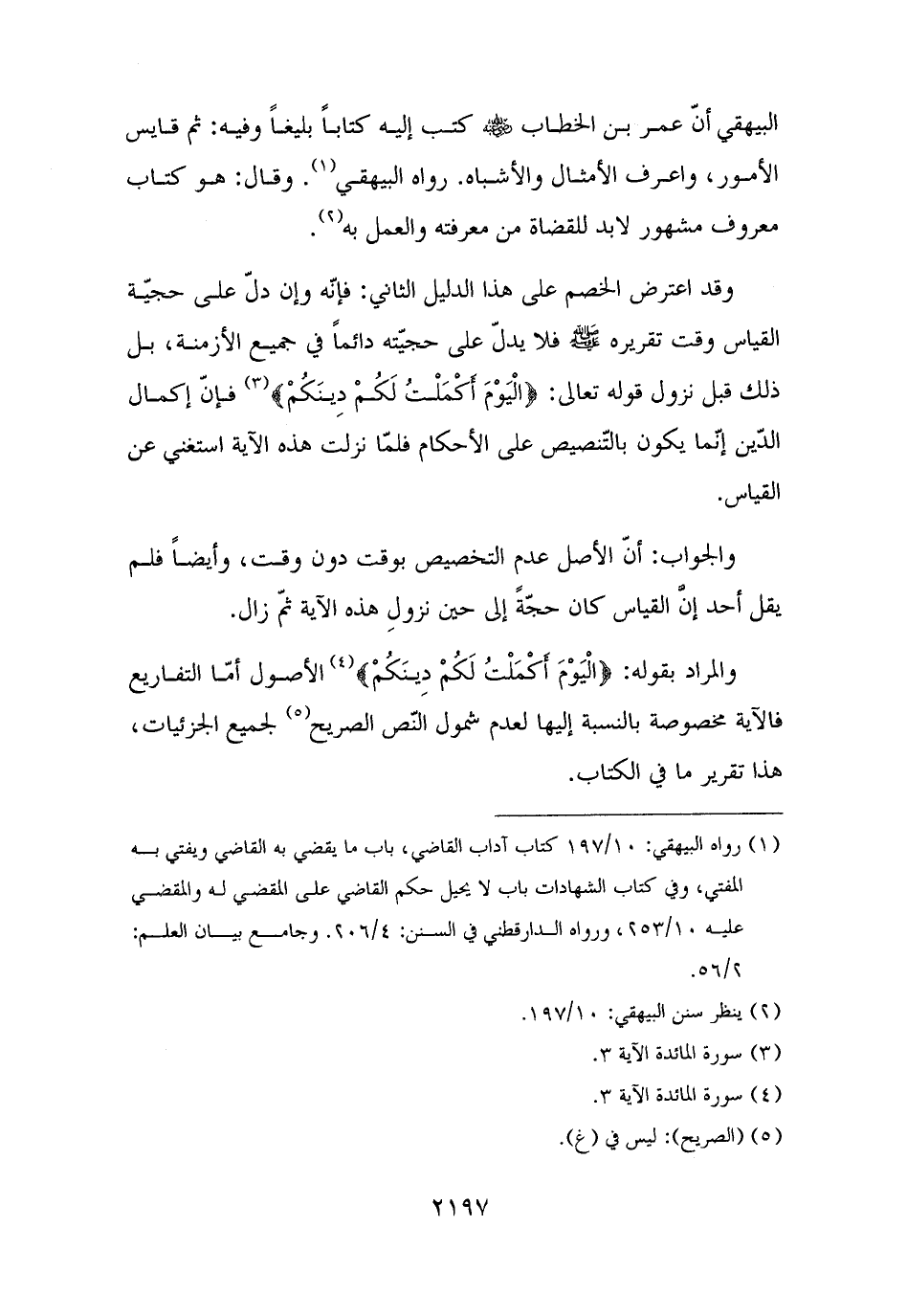 والمراد بقوله: {الْيَوْمَ أَكْمَلْتُ لَكُمْ دِينَكُمْ} (¬٤) الأصول أمّا التفاريع فالآية مخصوصة بالنسبة إليها لعدم شمول النّص الصريح (¬٥) لجميع الجزئيات، هذا تقرير ما في الكتاب.