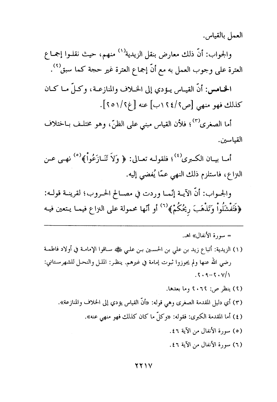 (¬٣) أي دليل المقدمة الصغرى وهي قوله: "أنَّ القياس يؤدي إلى الخلاف والمنازعة".