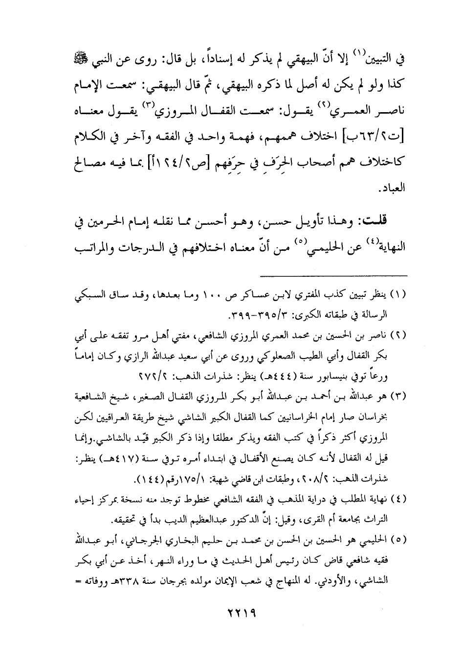 (¬٥) الحليمي هو الحسين بن الحسن بن محمد بن حليم البخاري الجرجاني، أبو عبد الله ففيه شافعي قاض كان رئيس أهل الحديث في ما وراء النهر، أخذ عن أبي بكر الشاشي، والأودني. له المنهاج في شعب الإيمان مولده بجرجان سنة ٣٣٨ هـ ووفاته =