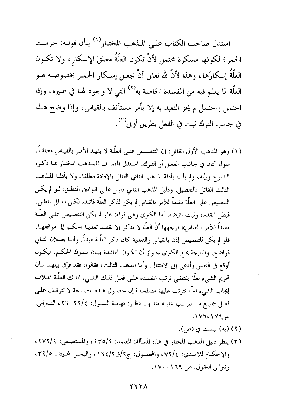 (¬٣) ينظر دليل المذهب المختار في هذه المسألة: المعتمد: ٢/ ٢٣٥، والمستصفى: ٢/ ٢٧٢، والإحكام للآمدي: ٤/ ٧٢، والمحصول: ج ٢/ ق ٢/ ١٦٤، والبحر المحيط: ٥/ ٣٢، ونبراس العقول: ص ١٦٩ - ١٧٠.