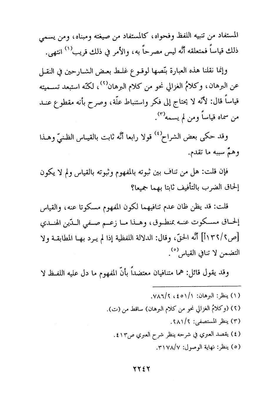 وإنما نقلنا هذه العبارة بنّصها لوقوع غلط بعض الشارحين في النقل عن البرهان، وكلامُ الغزالي نحو من كلام البرهان (¬٢)، لكنّه استبعد تسميته قياسًا قال: لأنَّه لا يحتاج إلى فكر واستنباط علّة، وصرح بأنه مقطوع عند من سماه قياسًا ومن لم يسمه (¬٣).