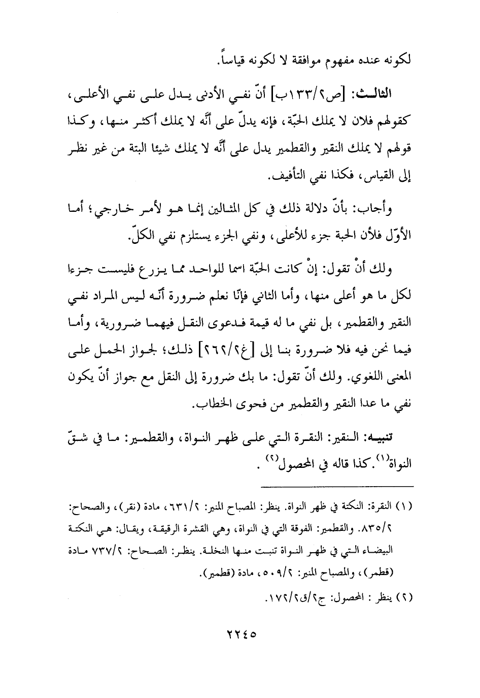 تنبيه: النقير: النقرة التي على ظهر النواة، والقطمير: ما في شقّ النواة (¬١). كذا قاله في المحصول (¬٢).