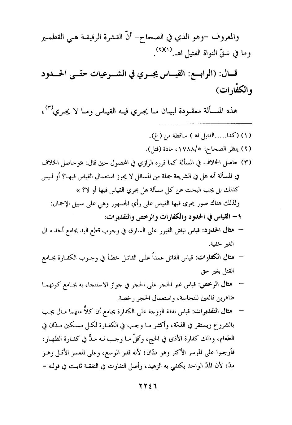 قال: (الرابع: القياس يجري في الشرعيات حتّى الحدود والكفَّارات)