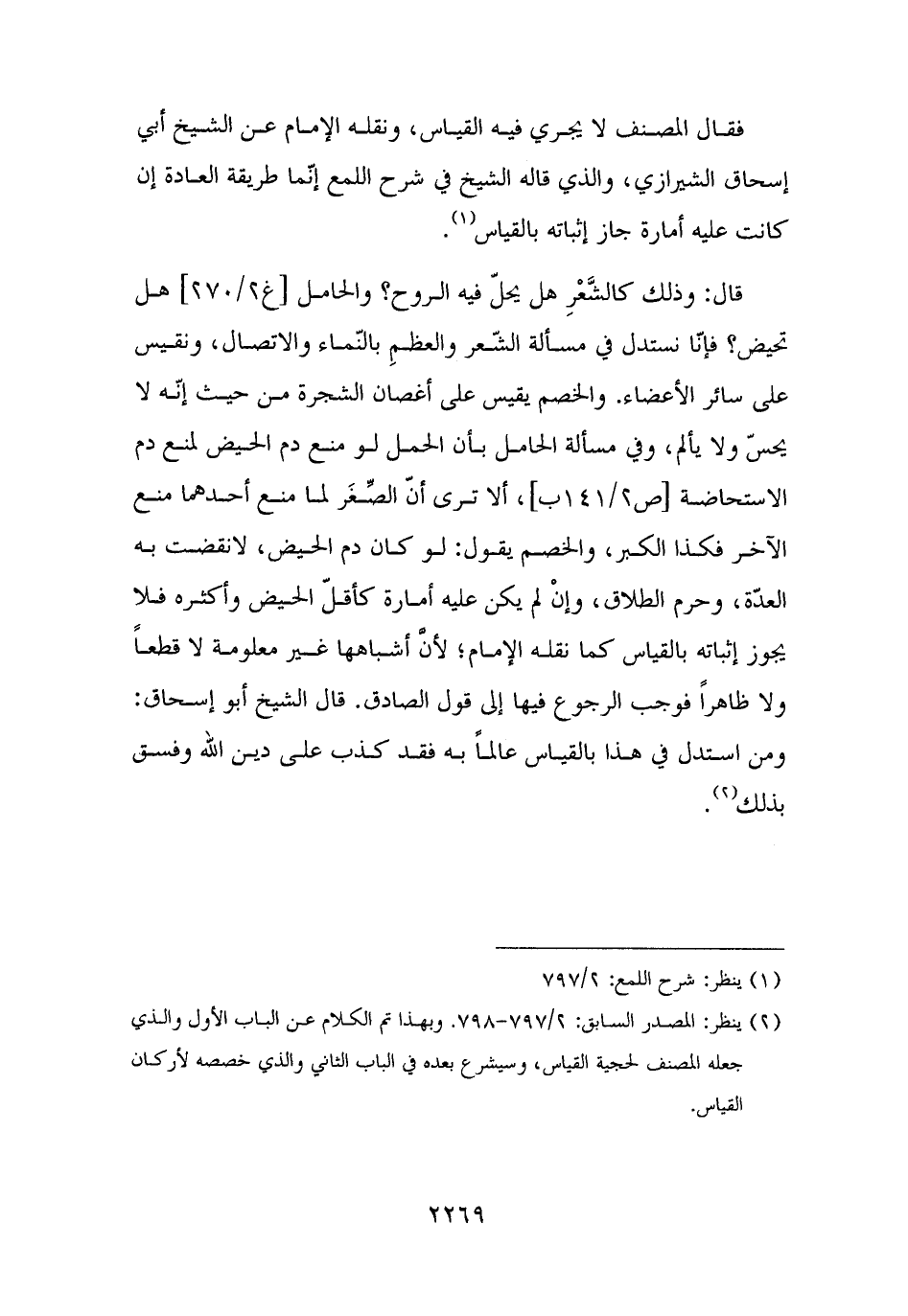 (¬٢) ينظر: المصدر السابق: ٢/ ٧٩٧ - ٧٩٨. وبهذا تم الكلام عن الباب الأول والذي جعله المصنف لحجية القياس، وسيشرع بعده في الباب الثاني والذي خصصه لأركان القياس.