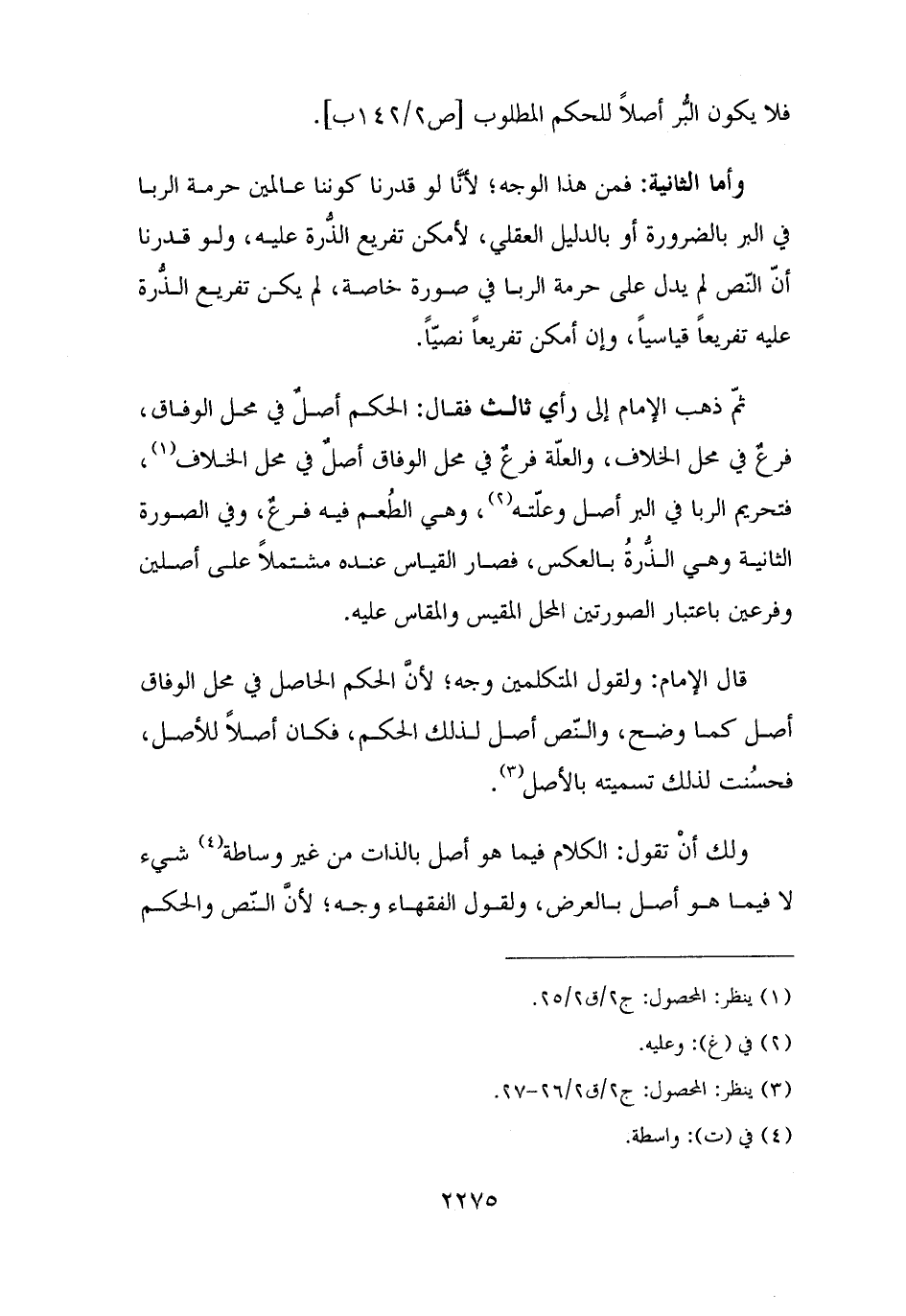 ولك أنْ تقول: الكلام فيما هو أصل بالذات من غير وساطة (¬٤) شيء لا فيما هو أصل بالعرض، ولقول الفقهاء وجه؛ لأنَّ النّص والحكم