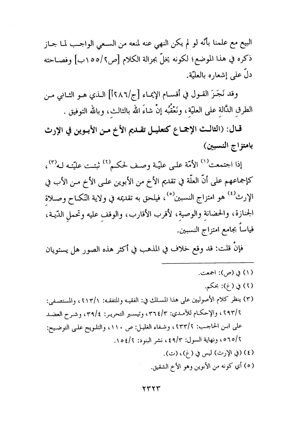 قال: (الثالث الإجماع كتعليل تقديم الأخ من الأبوين في الإرث بامتزاج النسبين)