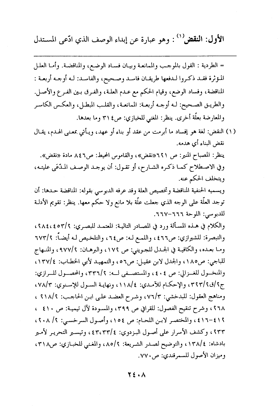 الأول: النقض (¬١): وهو عبارة عن إبداء الوصف الذي ادّعى المستدل