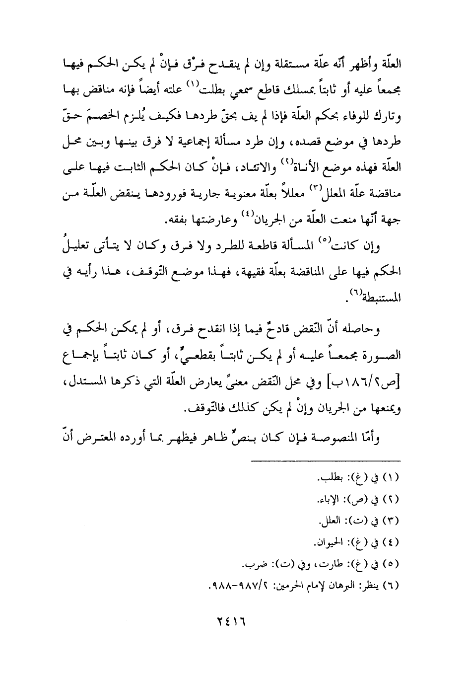 (¬٦) ينظر: البرهان لإمام الحرمين: ٢/ ٩٨٧ - ٩٨٨.