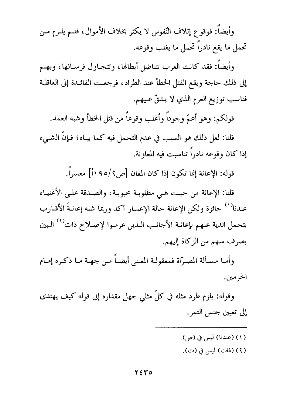 قلنا: لعل ذلك هو السبب في عدم التحمل فيه كما بيناه؛ فإنّ الشيء إذا كان وقوعه نادرًا تناسبت فيه المعاونة.