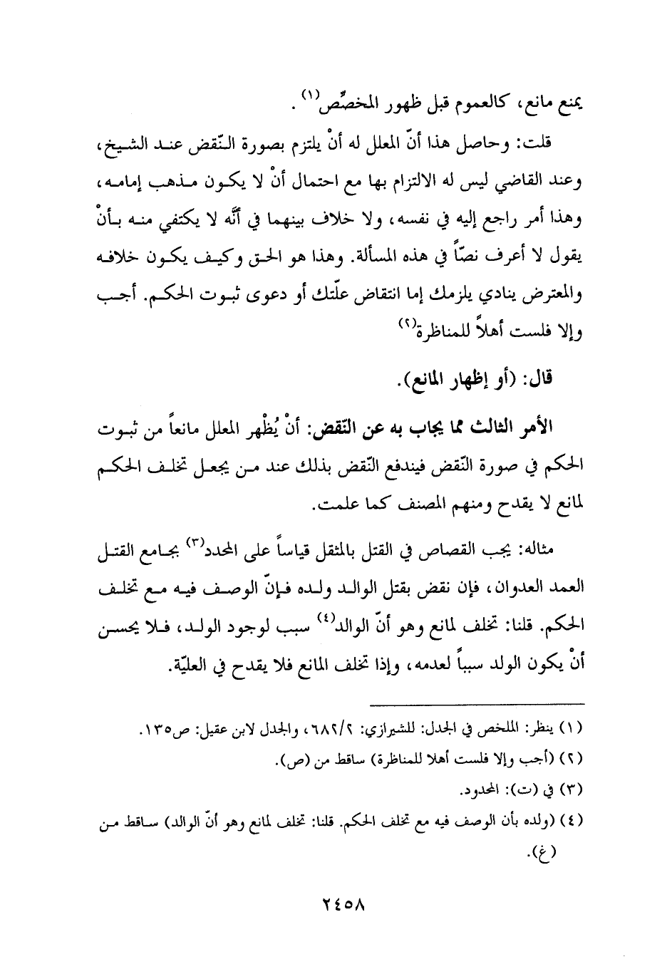 (¬١) ينظر: الملخص في الجدل: للشيرازي: ٢/ ٦٨٢، والجدل لابن عقيل: ص ١٣٥.