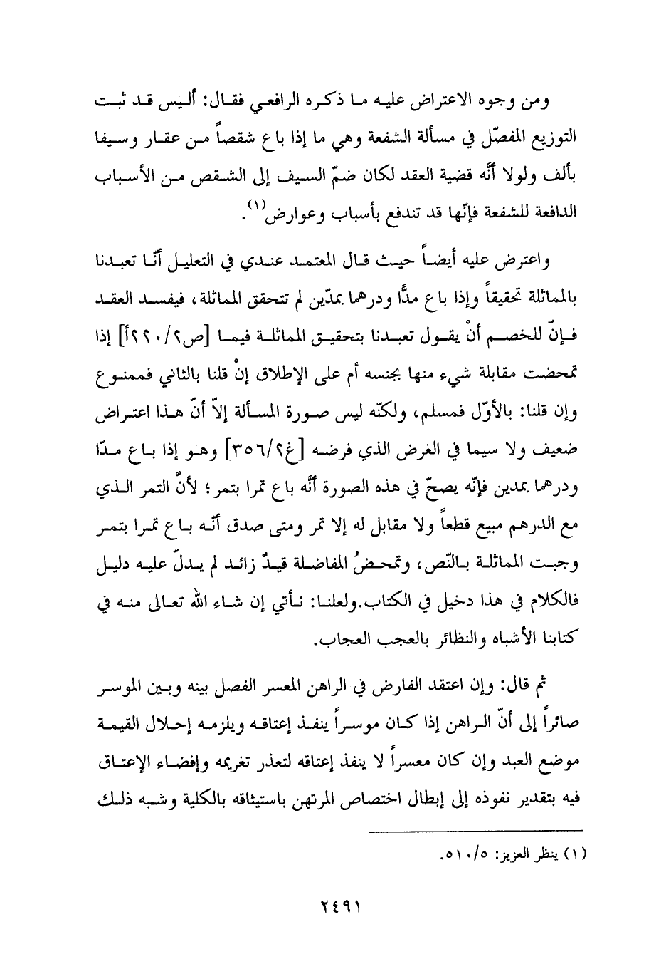 (¬١) ينظر العزيز: ٥/ ٥١٠.