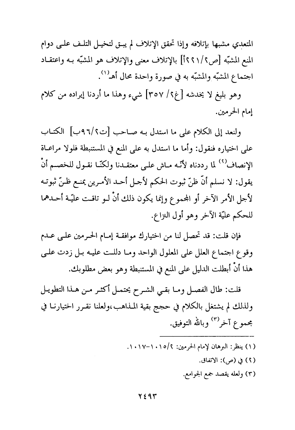 وهو بليغ لا يخدشه شيء وهذا ما أردنا إيراده من كلام إمام الحرمين.