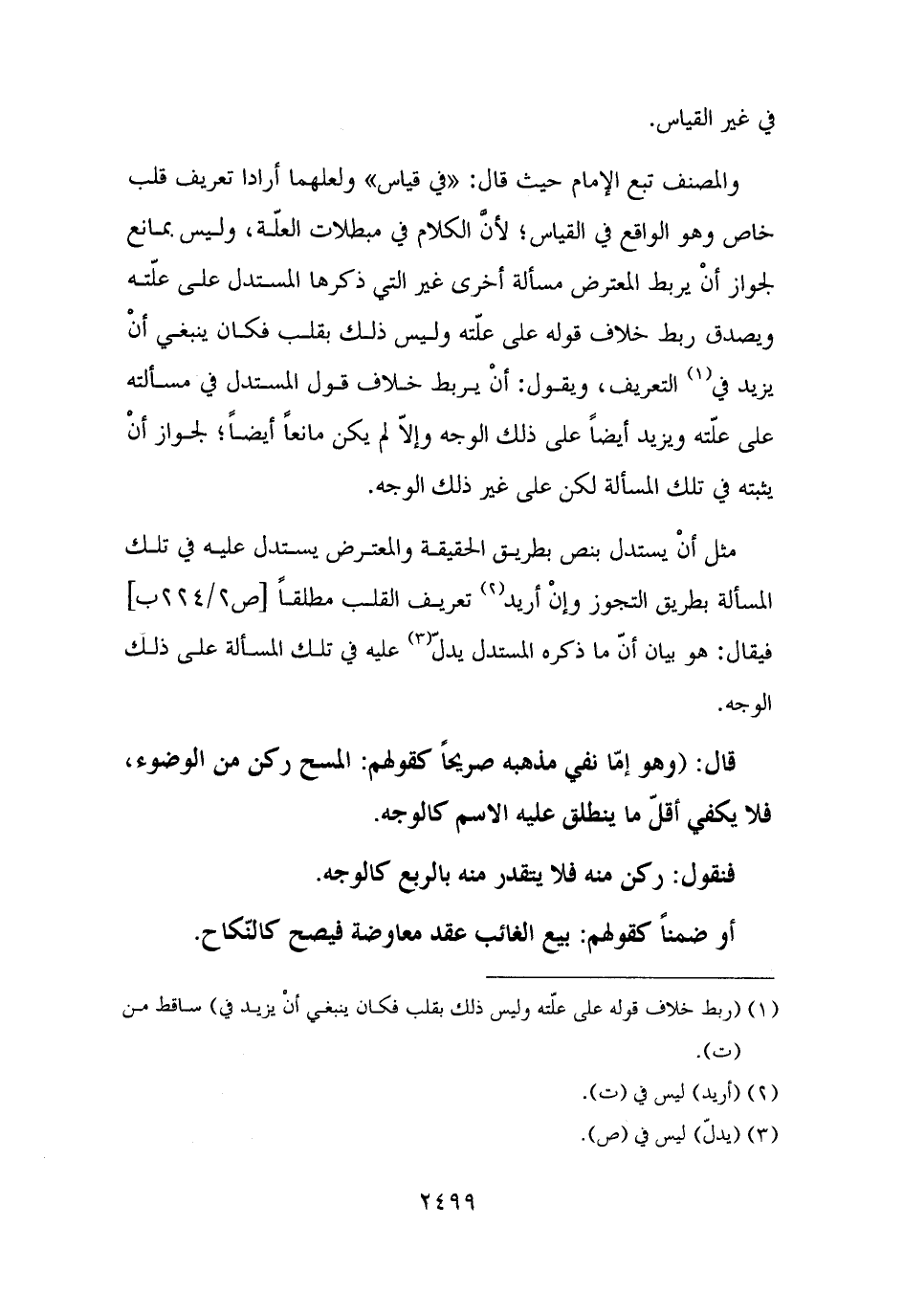 قال: (وهو إمّا نفي مذهبه صريحًا كقولهم: المسح ركن من الوضوء، فلا يكفي أقلّ ما ينطلق عليه الاسم كالوجه.