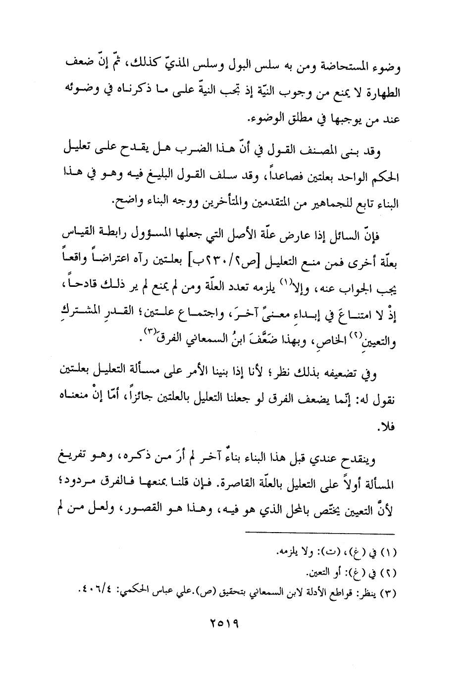 (¬٣) ينظر: قواطع الأدلة لابن السمعاني بتحقيق (ص). علي عباس الحكمي: ٤/ ٤٠٦.