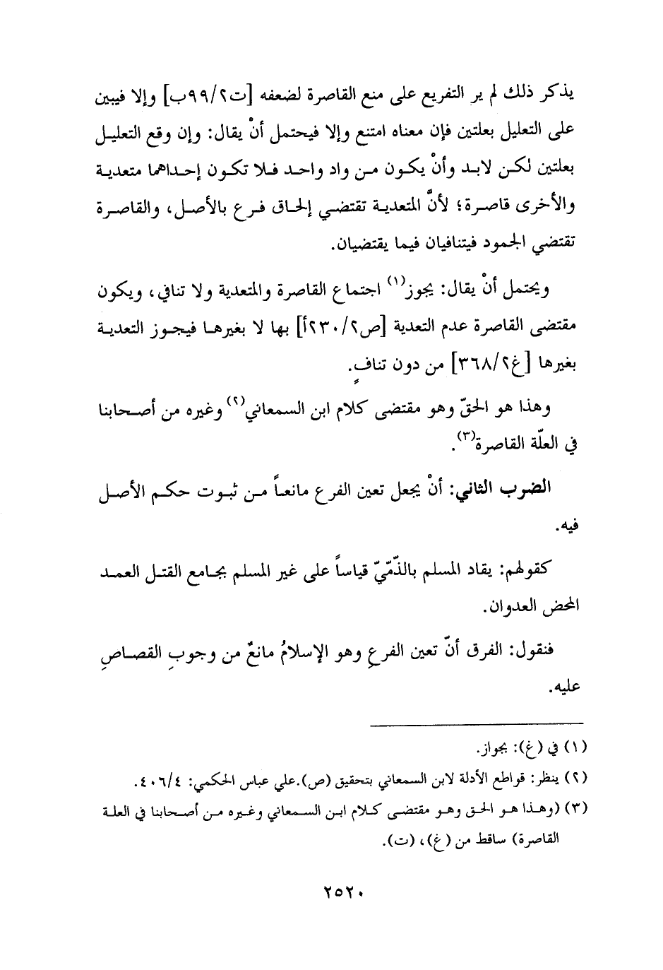 (¬٣) (وهذا هو الحق وهو مقتضى كلام ابن السمعاني وغيره من أصحابنا في العلة القاصرة) ساقط من (غ)، (ت).