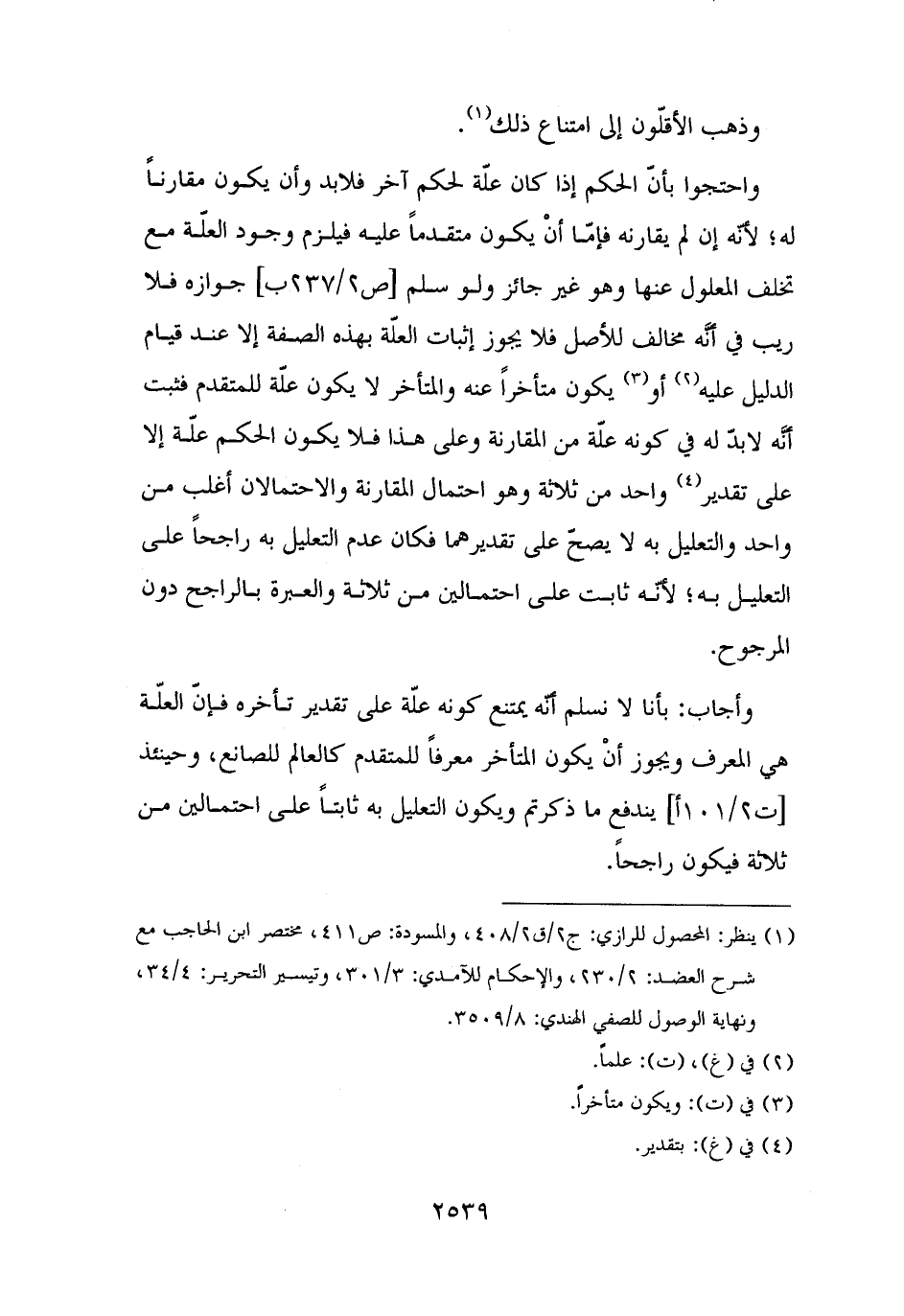 (¬١) ينظر: المحصول للرازي: ج ٢/ ق ٢/ ٤٠٨، والمسودة: ص ٤١١، مختصر ابن الحاجب مع شرح العضد: ٢/ ٢٣٠، والإحكام للآمدي: ٣/ ٣٠١، وتيسير التحرير: ٤/ ٣٤، ونهاية الوصول للصفي الهندي: ٨/ ٣٥٠٩.