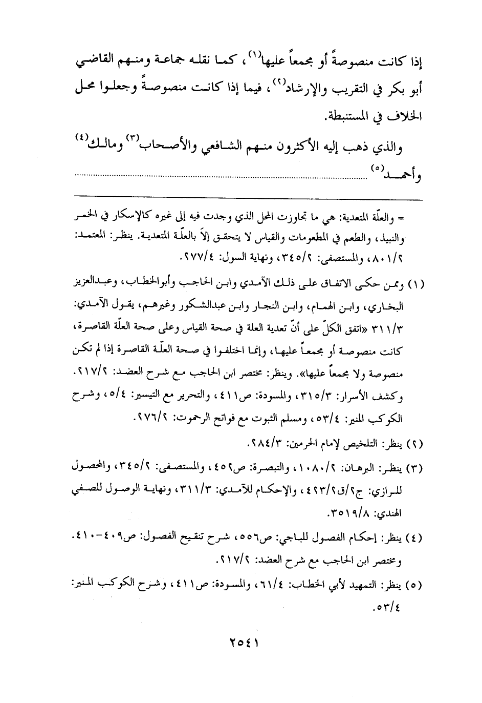 (¬٤) ينظر: إحكام الفصول للباجي: ص ٥٥٦، شرح تنقيح الفصول: ص ٤٠٩ - ٤١٠. ومختصر ابن الحاجب مع شرح العضد: ٢/ ٢١٧.