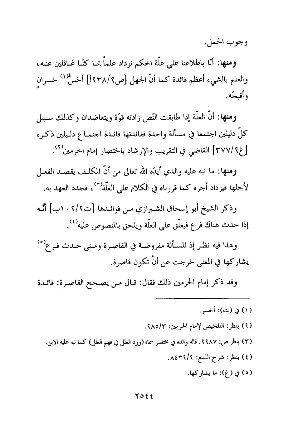 وذكر الشيخ أبو إسحاق الشيرازي من فوائدها أنَّه إذا حدث هناك فرع فيعلّق على العلّة ويلحق بالمنصوص عليه (¬٤).