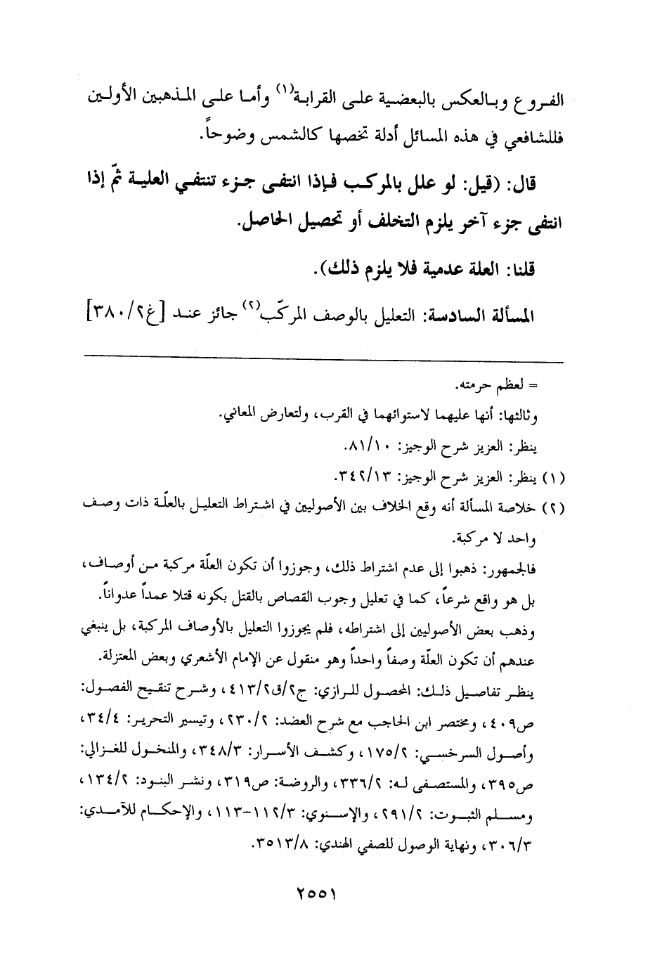 المسألة السادسة: التعليل بالوصف المركّب (¬٢) جائز عند