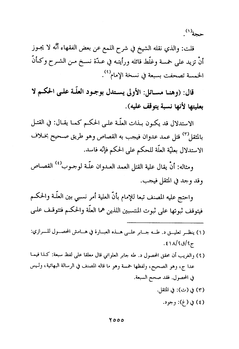 (¬١) ينظر تعليق د. طه جابر على هذه العبارة في هامش المحصول للرازي: ج ٢/ ق ٢/ ٤١٨.