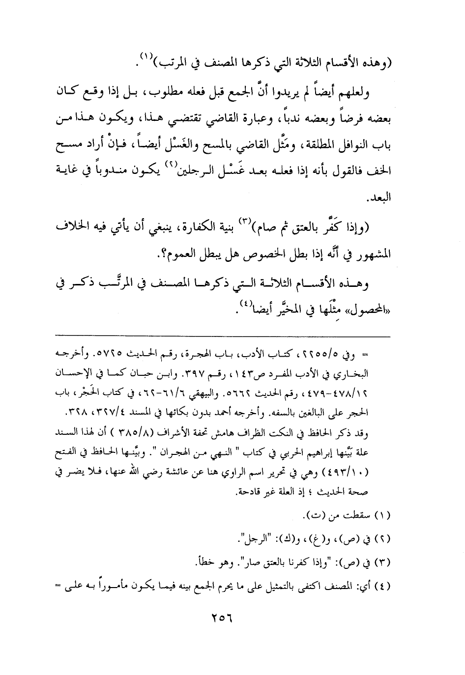 (وهذه الأقسام الثلاثة التي ذكرها المصنف في المرتب) (¬١).