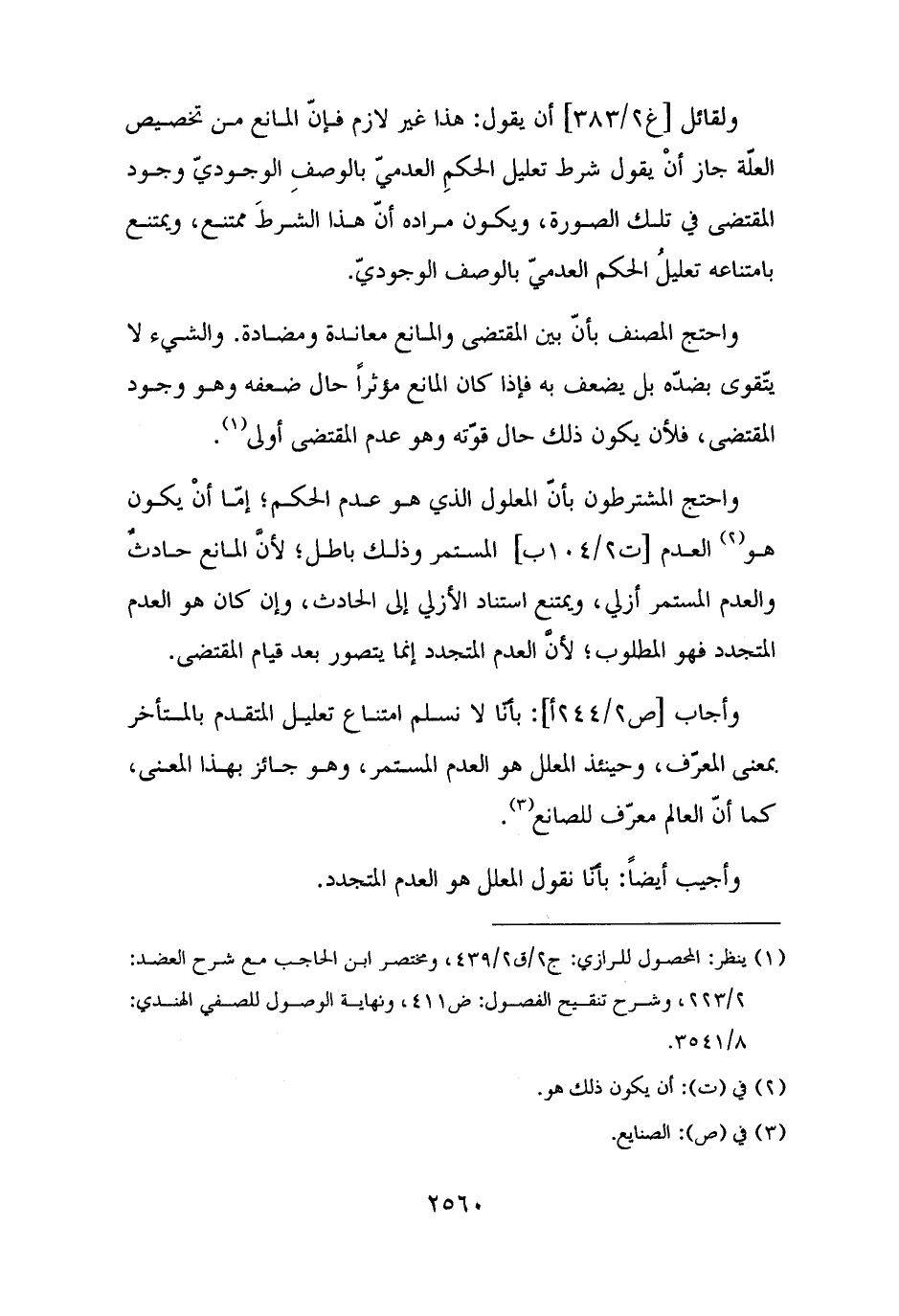 (¬١) ينظر: المحصول للرازي: ج ٢/ ق ٢/ ٤٣٩، ومختصر ابن الحاجب مع شرح العضد: ٢/ ٢٢٣، وشرح تنقيح الفصول: ض ٤١١، ونهاية الوصول للصفي الهندي: ٨/ ٣٥٤١.
