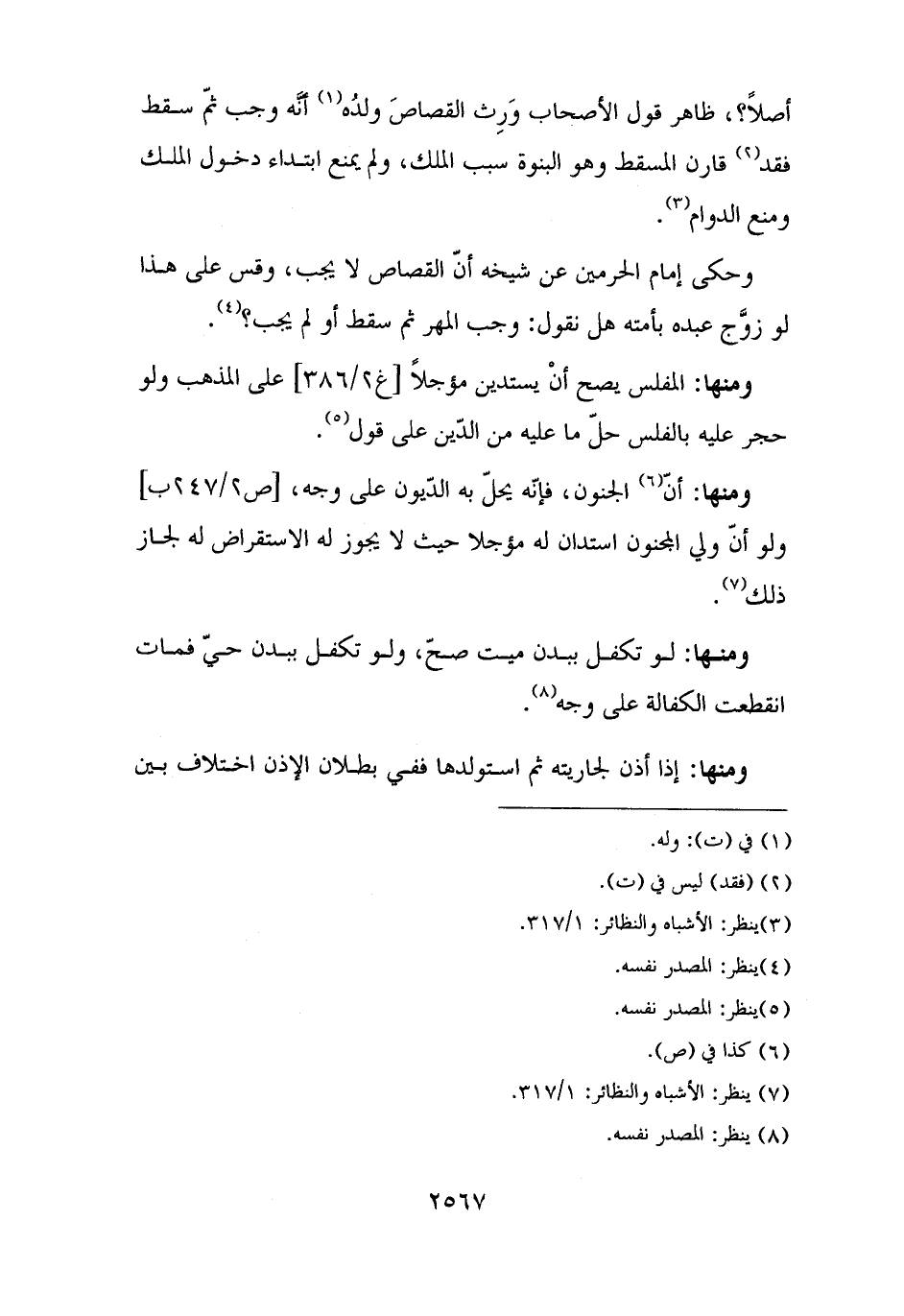 (¬٧) ينظر: الأشباه والنظائر: ١/ ٣١٧.