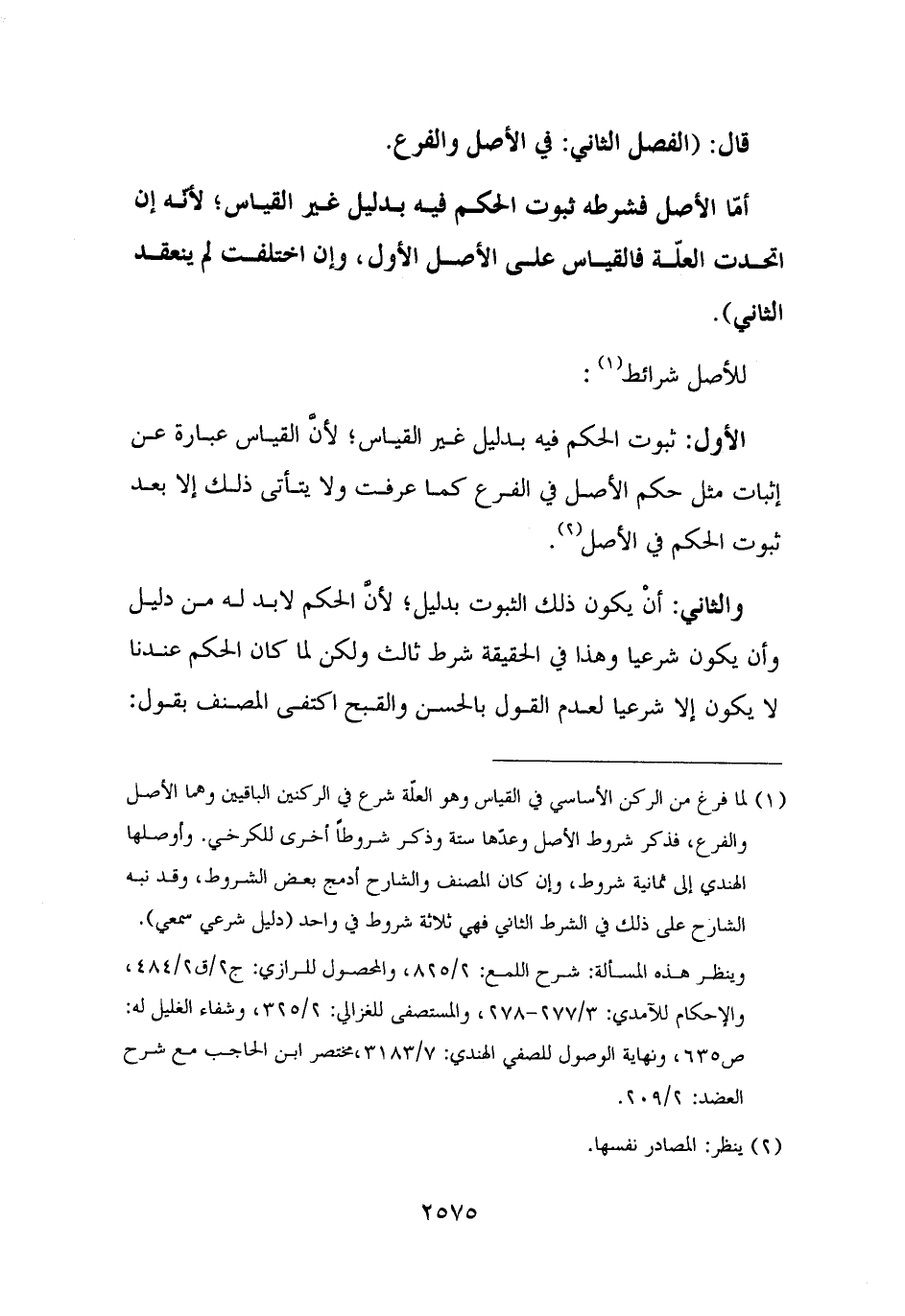 (¬١) لما فرغ من الركن الأساسي في القياس وهو العلّة شرع في الركنين الباقيين وهما الأصل والفرع، فذكر شروط الأصل وعدَّها ستة وذكر شروطًا أخرى للكرخي. وأوصلها الهندي إلى ثمانية شروط، وإن كان المصنف والشارح أدمج بعض الشروط، وقد نبه الشارح على ذلك في الشرط الثاني فهي ثلاثة شروط في واحد (دليل شرعي سمعي).