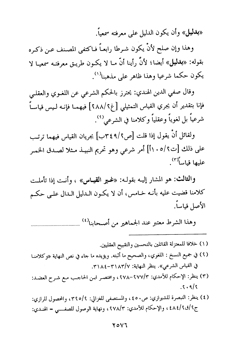 (¬٢) في جميع النسخ: اللغوي، والصحيح ما أثبته. ويؤيده ما جاء في نص النهاية "وكلامنا في القياس الشرعي". ينظر النهاية: ٧/ ٣١٨٣ - ٣١٨٤.