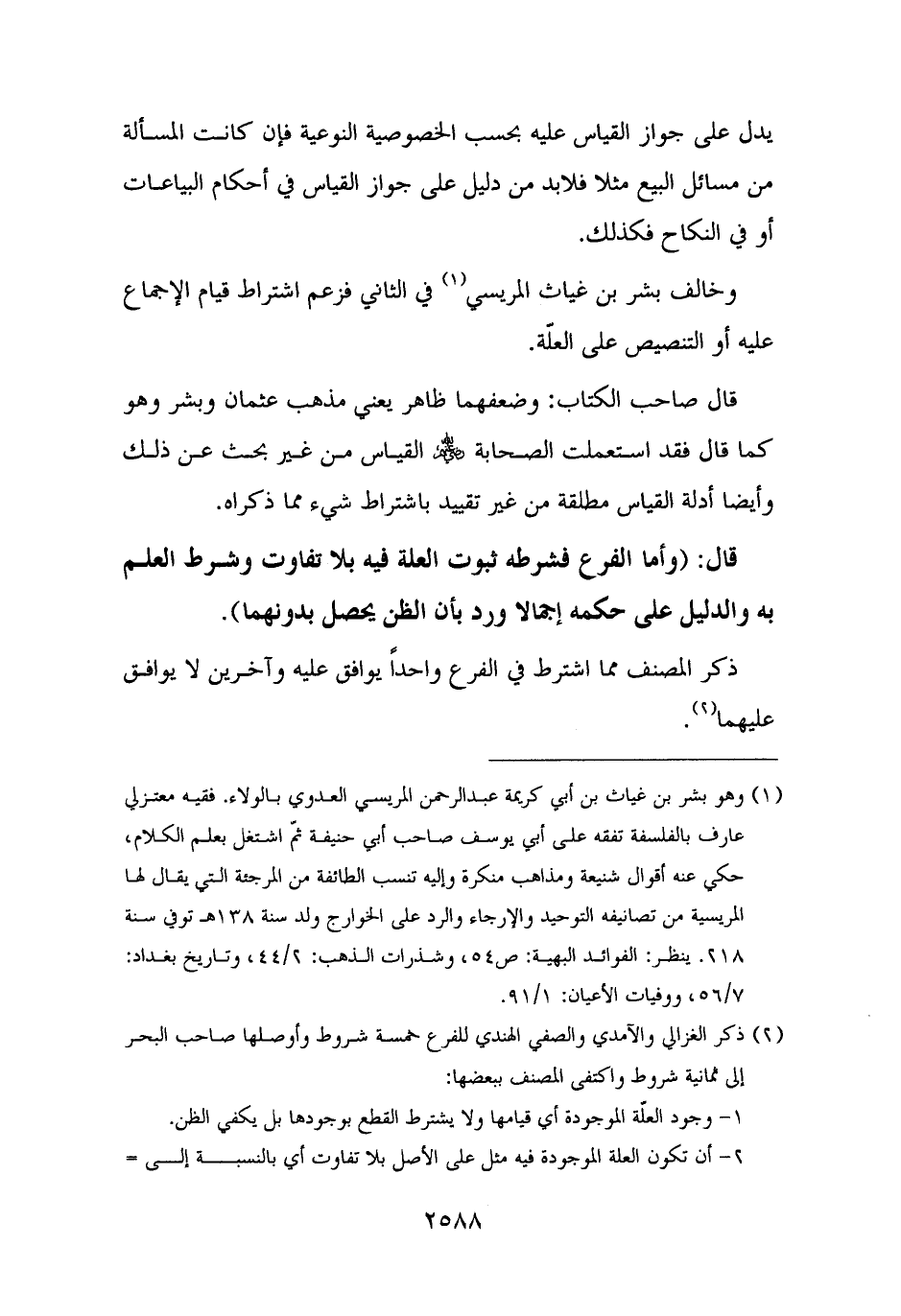 وخالف بشر بن غياث المريسي (¬١) في الثاني فزعم اشتراط قيام الإجماع عليه أو التنصيص على العلّة.