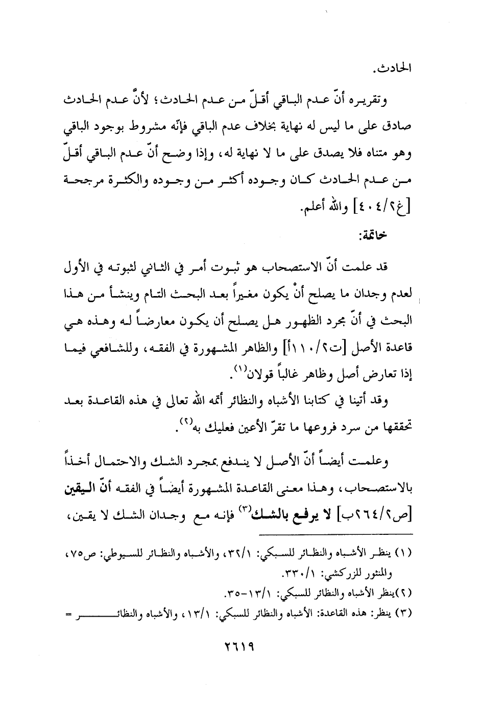 (¬٢) ينظر الأشباه والنظائر للسبكي: ١/ ١٣ - ٣٥.