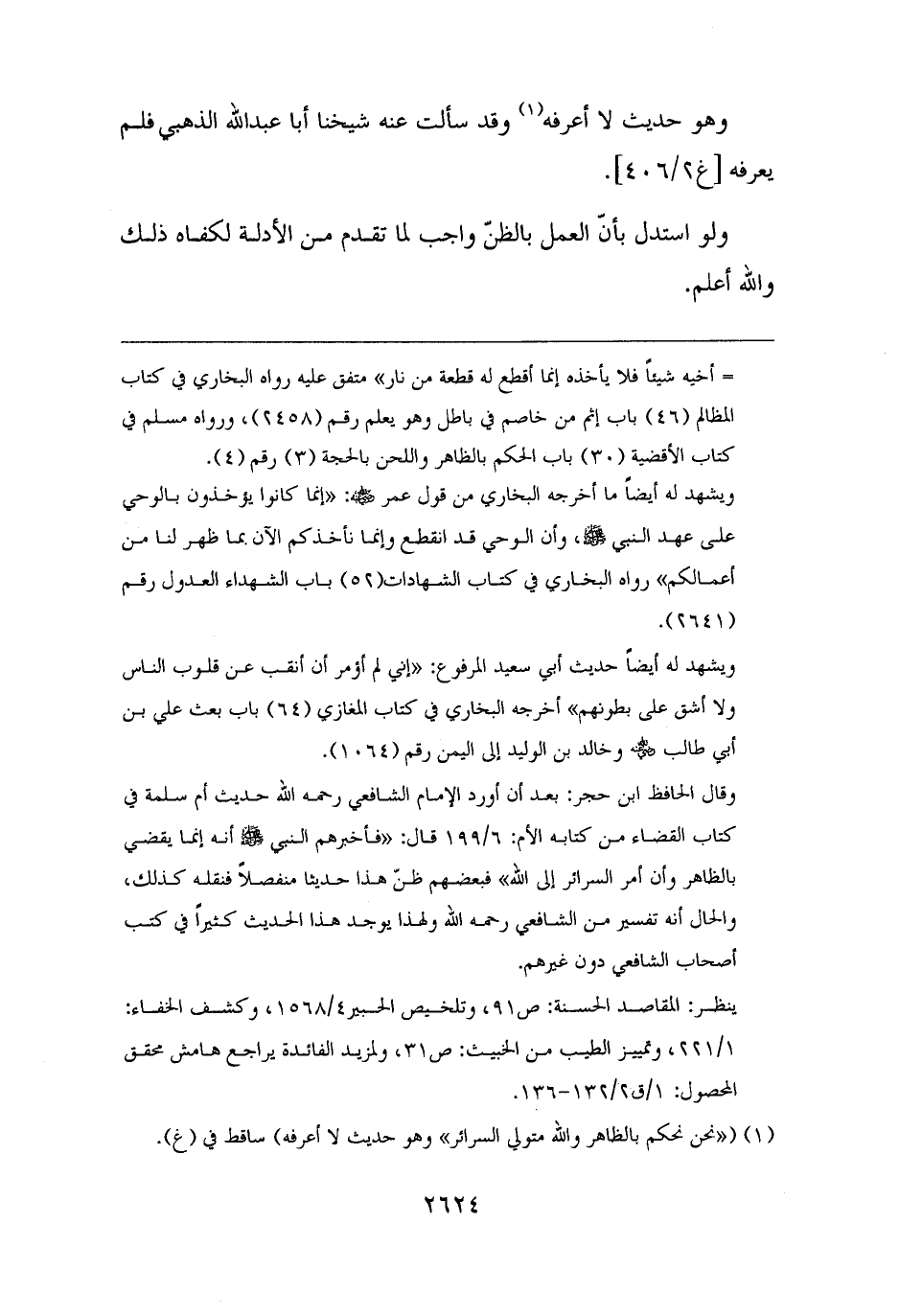 (¬١) ("نحن نحكم بالظاهر والله متولي السرائر" وهو حديث لا أعرفه) ساقط في (غ).