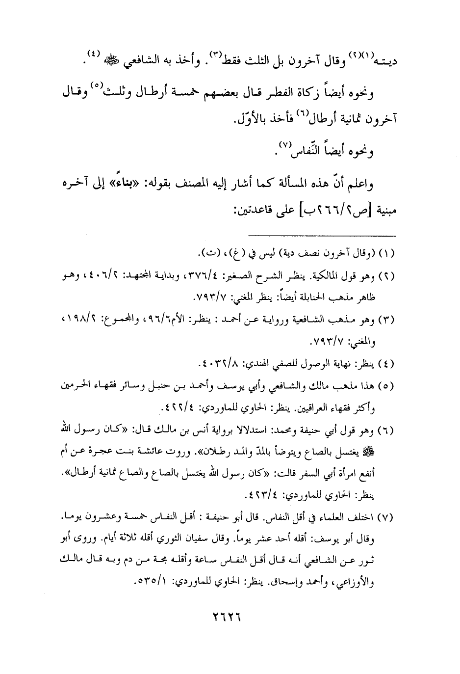 (¬٢) وهو قول المالكية. ينظر الشرح الصغير: ٤/ ٣٧٦، وبداية المجتهد: ٢/ ٤٠٦، وهو ظاهر مذهب الحنابلة أيضًا: ينظر المغني: ٧/ ٧٩٣.