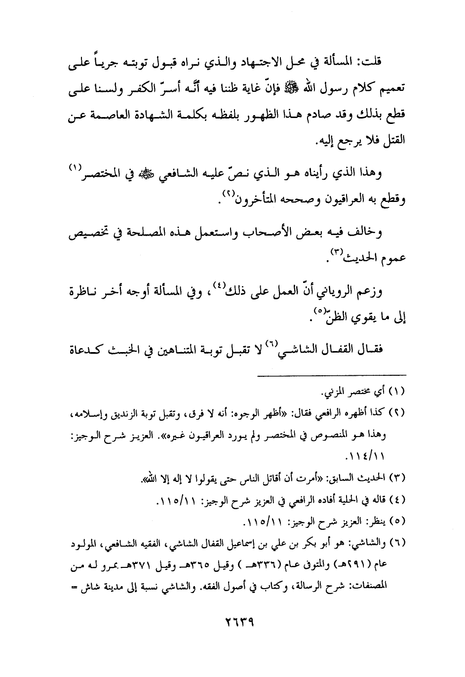 (¬٤) قاله في الحلية أفاده الرافعي في العزيز شرح الوجيز: ١١/ ١١٥.