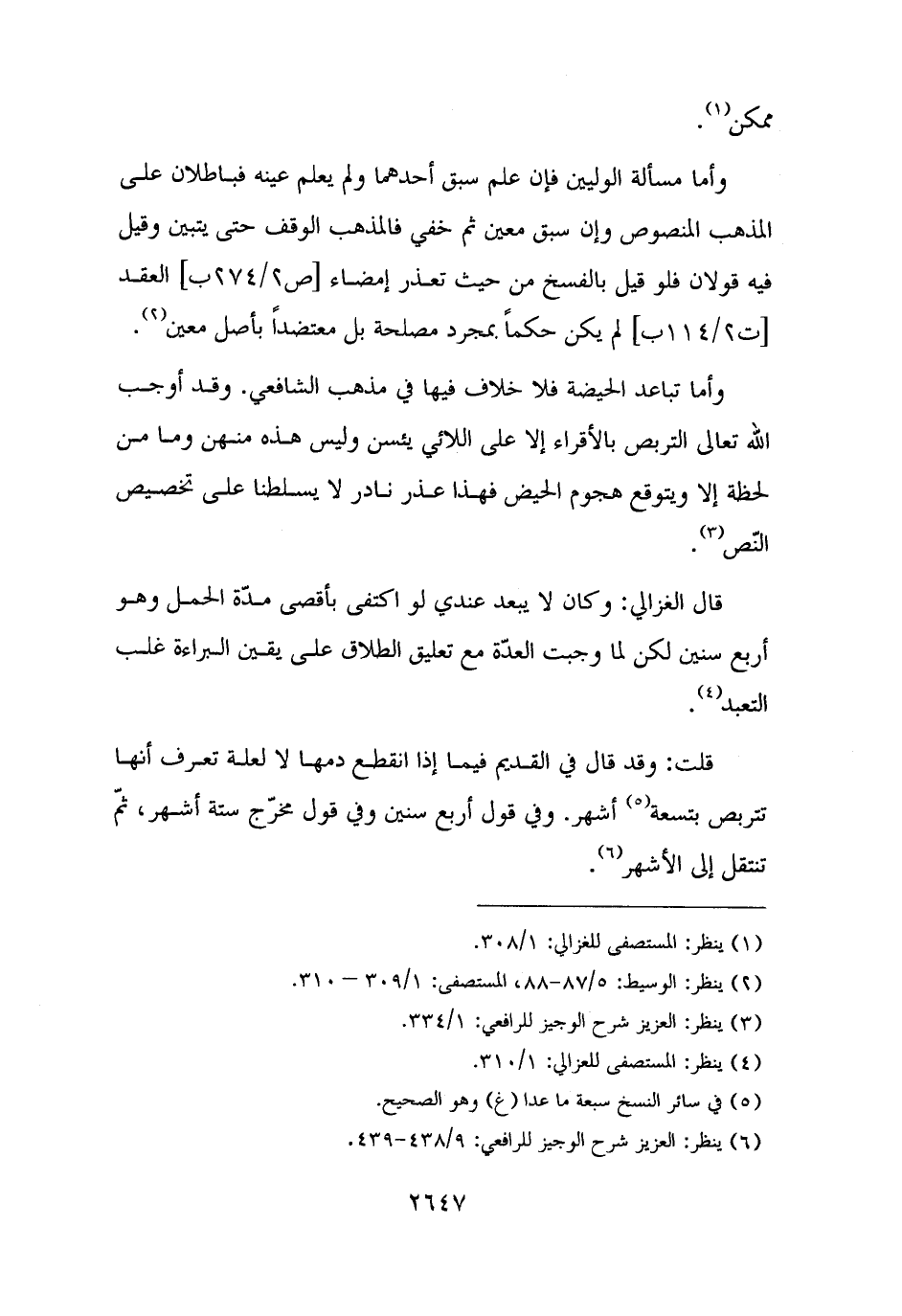 (¬٦) ينظر: العزيز شرح الوجيز للرافعي: ٩/ ٤٣٨ - ٤٣٩.