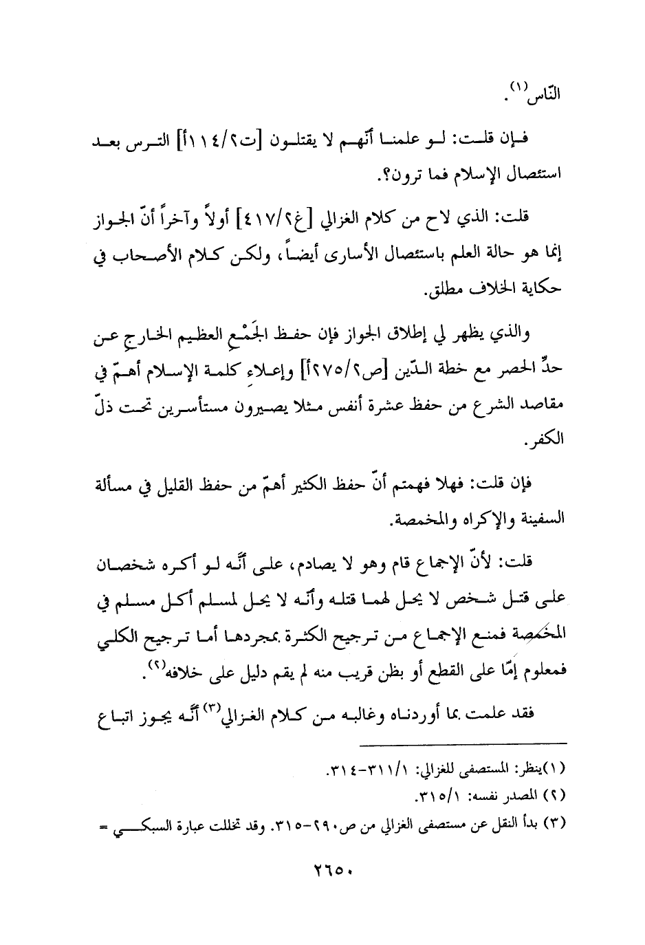 (¬٣) بدأ النقل عن مستصفى الغزالي من ص ٢٩٠ - ٣١٥. وقد تخللت عبارة السبكي =