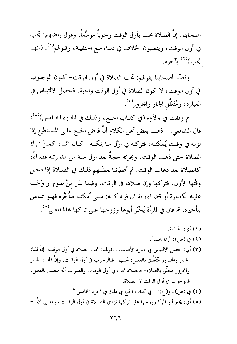ثم وقفت في "الأم" (في كتاب الحج، وذلك في الجزء الخامس) (¬٤): قال الشافعي: "ذهب بعض أهل الكلام أنَّ فرض الحج على المستطيع إذا لزمه في وقتٍ يُمكنه، فتركه في أوَّل ما يمكنه - كان آثما، كمَنْ ترك الصلاة حتى ذهب الوقت، ويجزئه حجةٌ بعد أول سنة من مقدرته قضاءً، كالصلاة بعد ذهاب الوقت. ثم أعطانا بعضُهم ذلك في الصلاة إذا دخل وقتُها الأول، فتركها وإن صلاها في الوقت، وفيما نذر مِنْ صوم أو وَجَب عليه بكفارة أو قضاء، فقال فيه كله: متى أمكنه فأَخَّره فهو عاص بتأخيره. ثم قال في المرأة يُجْبَر أبوها وزوجها على تركها لهذا المعنى (¬٥).
