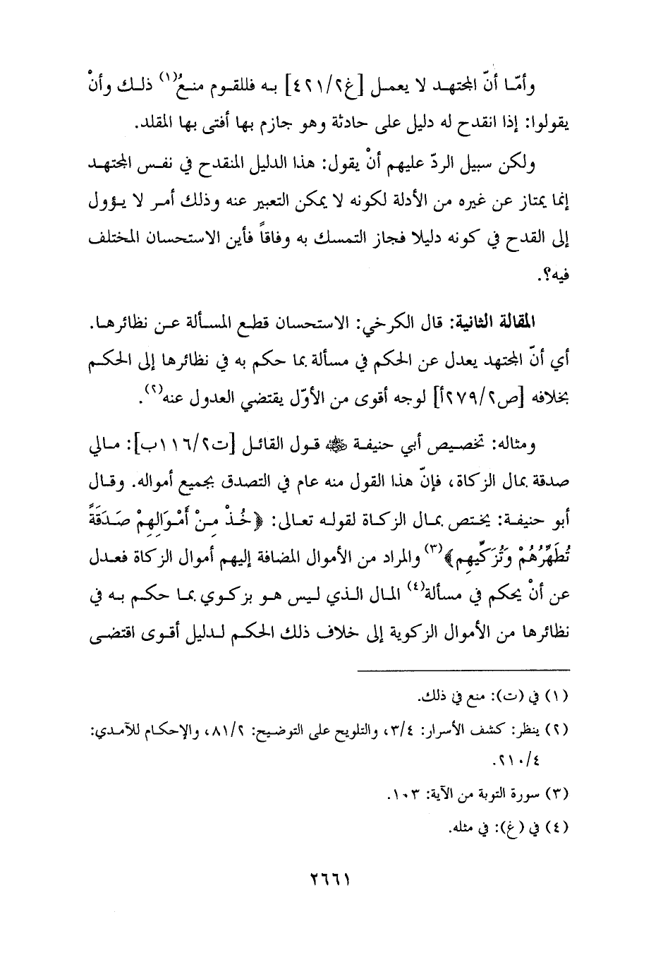 (¬٢) ينظر: كشف الأسرار: ٤/ ٣، والتلويح على التوضيح: ٢/ ٨١، والإحكام للآمدي: ٤/ ٢١٠.