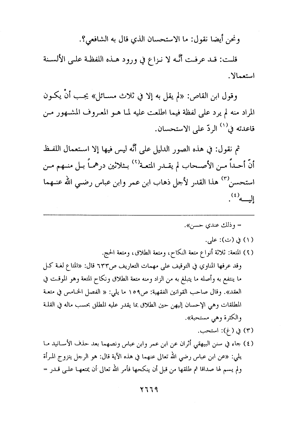 ثم نقول: في هذه الصور الدليل على أنَّه ليس فيها إلا استعمال اللفظ أنّ أحدًا من الأصحاب لم يقدر المتعة (¬٢) بثلاثين درهمًا بل منهم من استحسن (¬٣) هذا القدر لأجل ذهاب ابن عمر وابن عباس رضي الله عنهما إليه (¬٤).