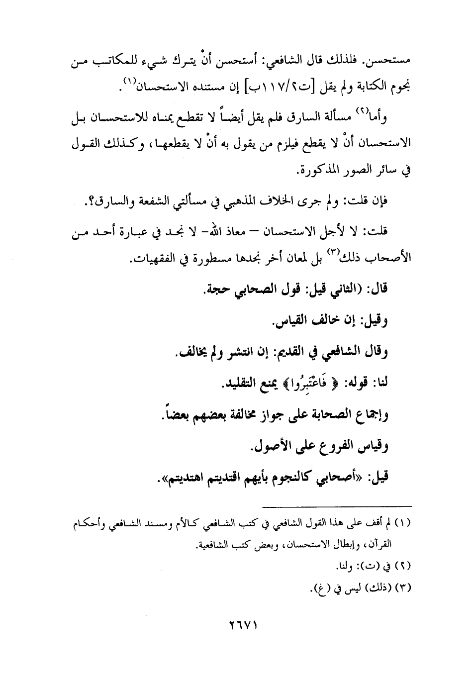 (¬١) لم أقف على هذا القول الشافعي في كتب الشافعي كالأم ومسند الشافعي وأحكام القرآن، وإبطال الاستحسان، وبعض كتب الشافعية.