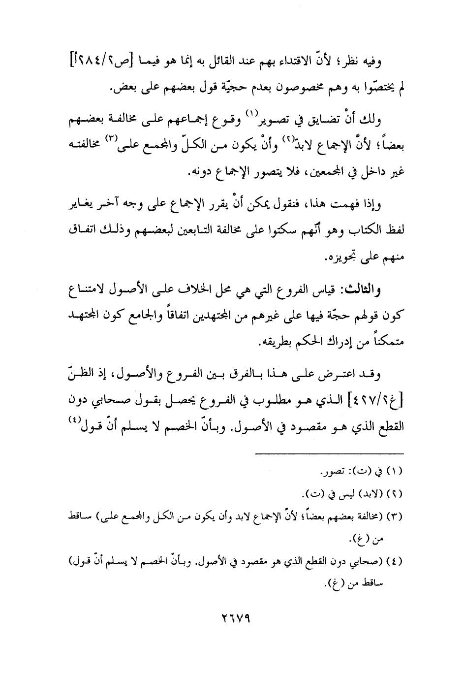 (¬٣) (مخالفة بعضهم بعضًا؛ لأنَّ الإجماع لا بد وأن يكون من الكل والمجمع على) ساقط من (غ).