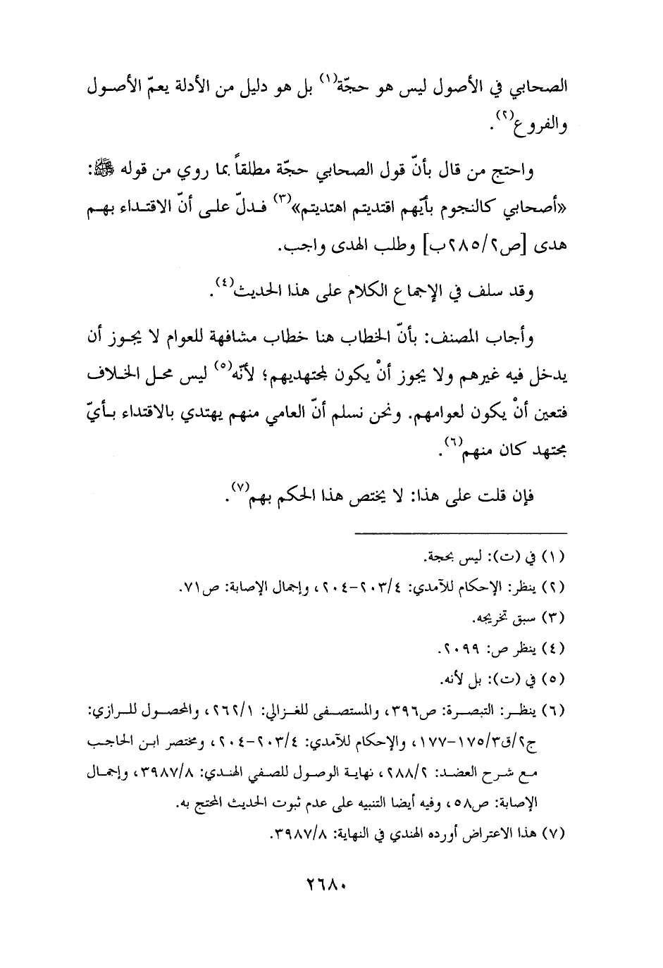 (¬٧) هذا الاعتراض أورده الهندي في النهاية: ٨/ ٣٩٨٧.