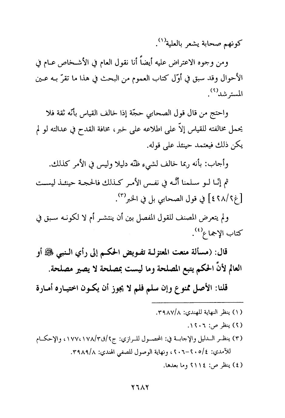 (¬١) ينظر النهاية للهندي: ٨/ ٣٩٨٧.